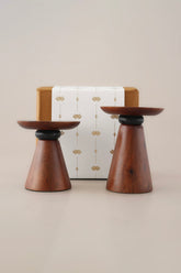 Crafted from wood in dark brown colour with a striking marble centre, this candle holder effortlessly blends playfulness with modern elegance. Place it on any surface and light a candle on it to create a warm, inviting ambiance.