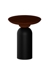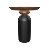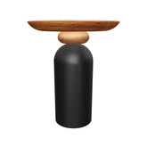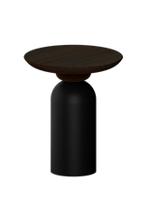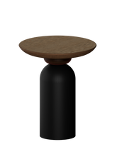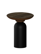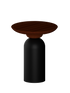 The Perisi Side Table starts with a thick wood top with a demi-bullnose edge giving it a soft yet great character. Followed by a playfully round block of wood which finally rests on a scuba tank like metal base.