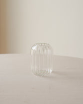Delicate and charming, the Kira Bud Vase brings understated elegance to any space. Crafted from crystal-clear borosilicate glass, this petite vase showcases beautiful ribbed detailing that catches and reflects light beautifully throughout the day.