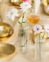 Delicate and charming, the Kira Bud Vase brings understated elegance to any space. Crafted from crystal-clear borosilicate glass, this petite vase showcases beautiful ribbed detailing that catches and reflects light beautifully throughout the day.