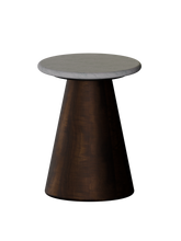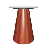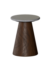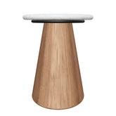 The conifer table is a sophisticatedly simple table that fits into any living space. Made with Acacia wood, the round tabletop has a marble top and is supported by a conical pedestal base.