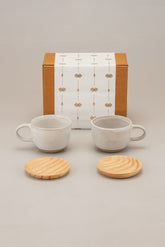 A quiet celebration of everyday moments. Featuring two handcrafted Snowdrop Latte Cups paired with Pine Wood Coasters, this set is designed for slow mornings, shared conversations, and comforting pauses. A thoughtful gift that blends warmth, simplicity, and timeless craft.