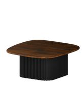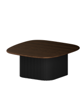 The interplay of light and shadow with the delicate folds at the base of the origami table, creates a mesmerizing centerpiece for any living space. Ideal for a small seating setup or a larger setting when nesting with Origami Quad Coffee Table, Medium.