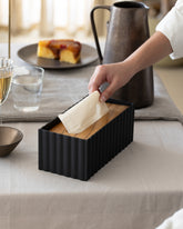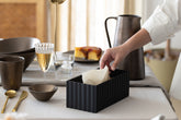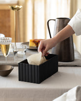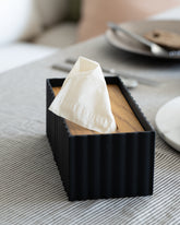 This elegant origami-inspired napkin holder brings the ancient art of paper folding to your modern table. Crafted with clean geometric lines and a sophisticated black finish, it seamlessly blends form and function to elevate your dining aesthetic.