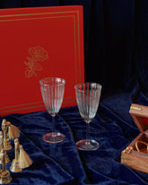 Two Kira stemware flutes, designed for beginnings. The kind you reach for when words fall short and celebration takes over. Understated, lasting, made to be used.