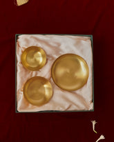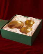 Three brass forms that hold food, flowers, or small rituals. A gift that mirrors the joining of households - each unique, yet belonging together.