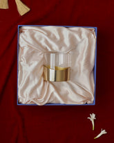 A gentle curve of glass and brass that catches light like water. Balanced, fluid, and timeless. A reminder that all things - even love - move and change beautifully.